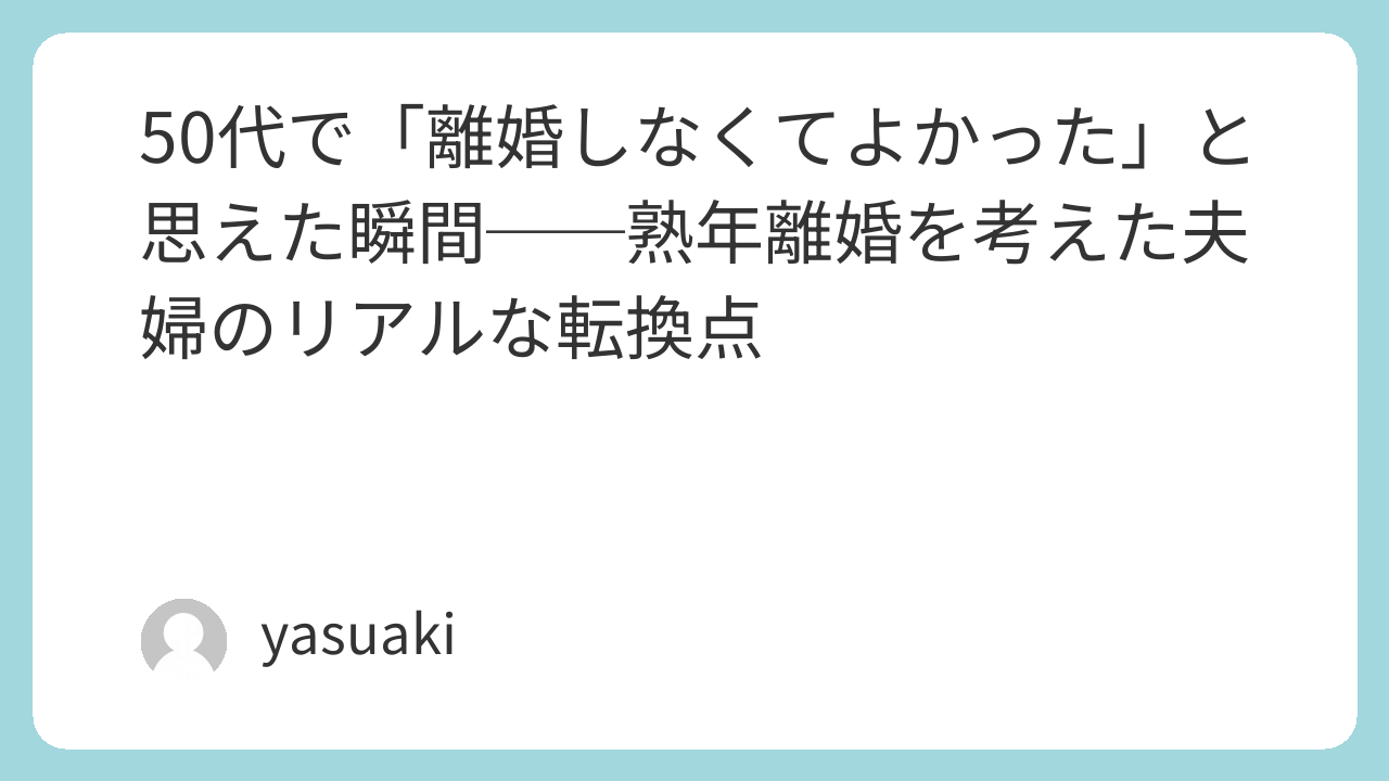 この記事で伝えたいのは、離婚した人の後悔でも、離婚を勧める話でもありません。**「一緒にいることを選んだ人が、なぜそう思えたのか」**という、あまり語られてこなかった側の物語です。