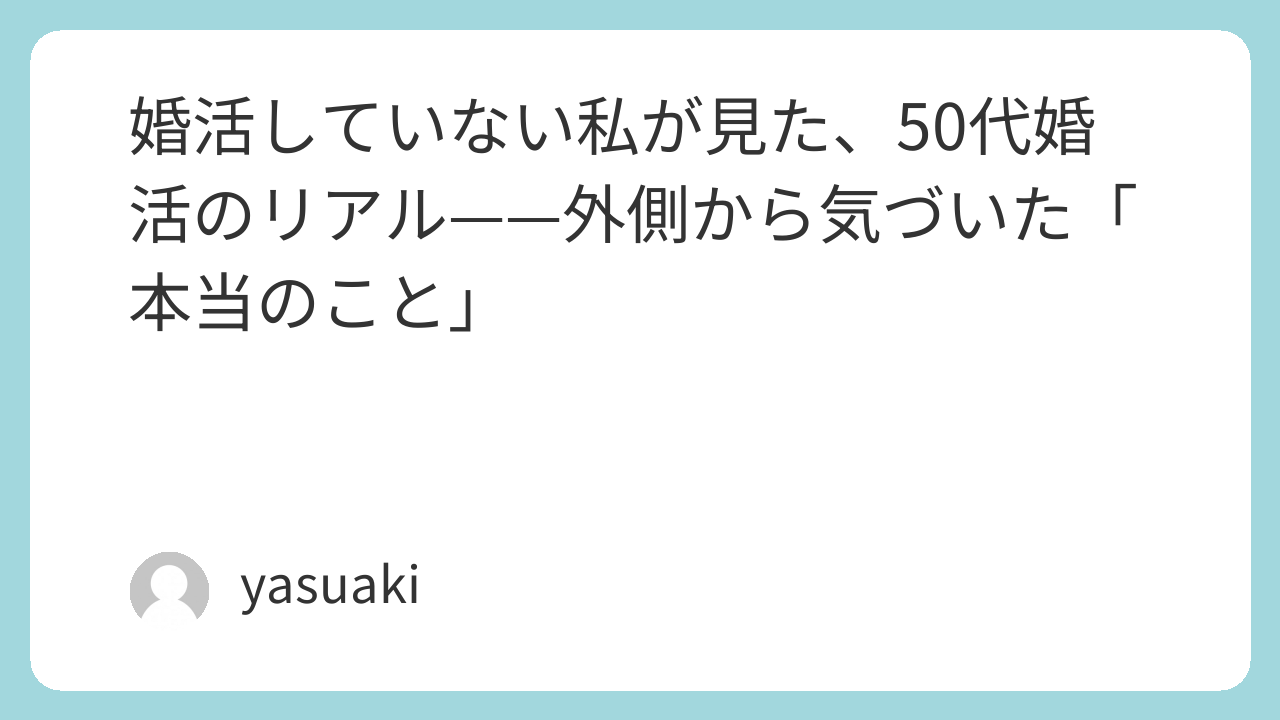 結局のところ、50代の婚活のリアルって、「相手を見つけること」よりも「自分と向き合うこと」に近いのかもしれません。