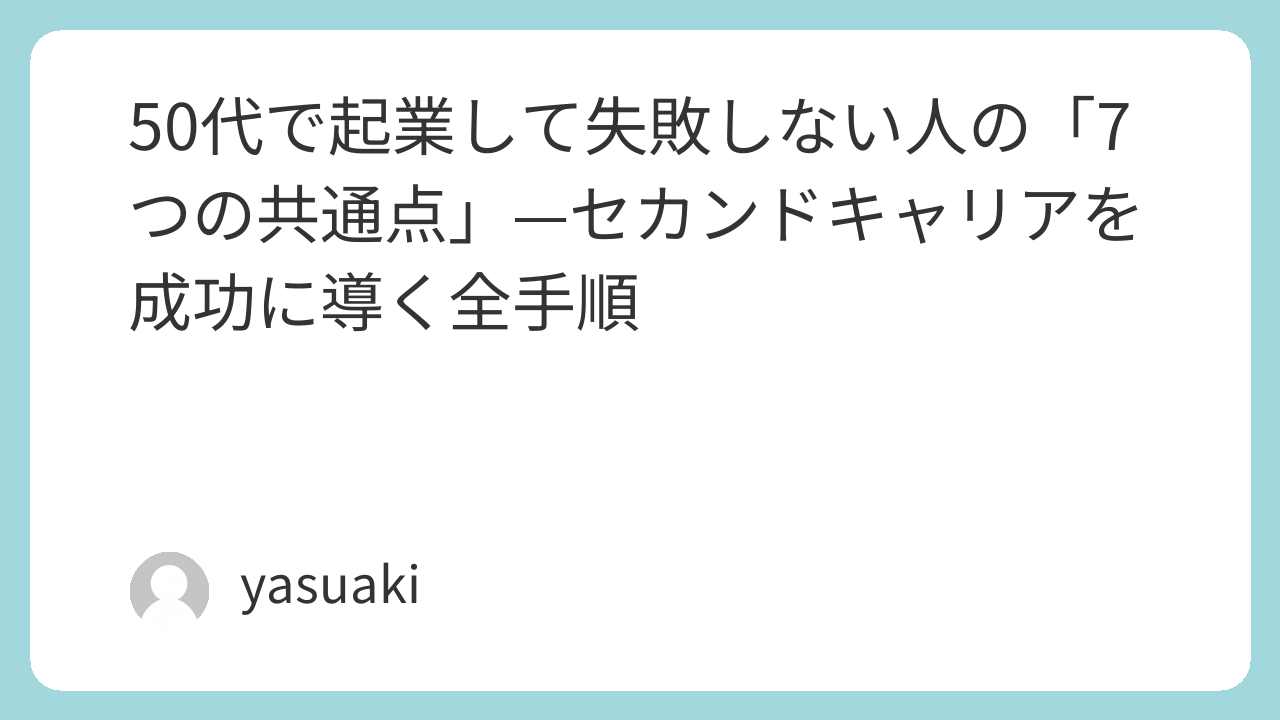50代は「自分でやってきた」という実績があるからこそ、人に頼るのが苦手になりがちです。でも、商工会議所の無料相談、同業の先輩起業家との交流——こういうつながりが、孤独な判断ミスを防ぎます。 - 「60点でスタート」を受け入れる