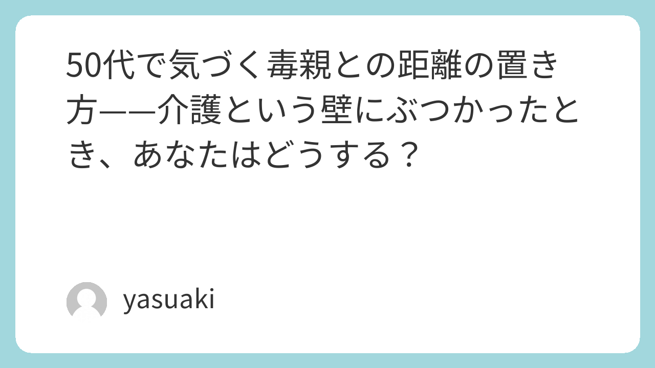 50代で気づく毒親との距離の置き方——介護という壁にぶつかったとき、あなたはどうする?