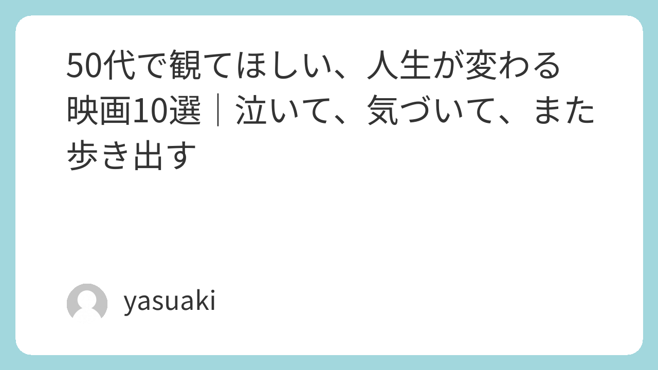 50代に刺さる「人生が変わる映画」を、体験談と感情の動きを交えながら厳選紹介。ただの感動作リストではなく、「なぜ50代の今観るべきか」を丁寧に解説しています。