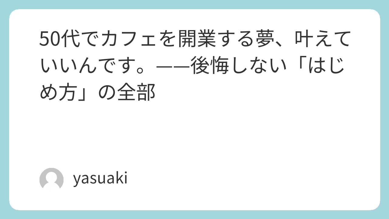 ただ、夢だけで動くのも危険です。現実のリスクを直視した上で、「小さく始めて、確かめながら育てる」——それが50代のカフェ開業の正しいアプローチだと思っています。