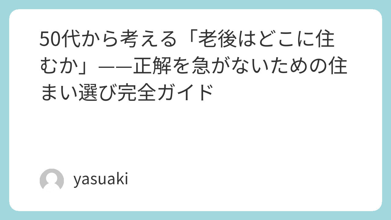 この記事では、老後の住む場所について漠然と悩んでいる50代の方に向けて、競合記事が書かない「失敗のリアル」と「後悔しないための視点」をお伝えします。
