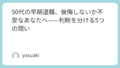 「まだ早い」と思っていませんか。正直に言うと、50代こそ始めどきです。