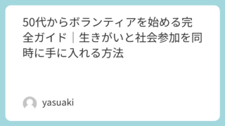 50代からのボランティアの始め方を、タイプ別診断・具体的なサービス・よくある失敗まで完全解説。社会参加と生きがい探しを同時に叶えるための実践ガイドです。