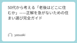 暮らしを整える 50代から考える「老後はどこに住むか」——正解を急がないための住まい選び完全ガイド 50代が老後の住む場所に悩む理由と解決策を解説。都市・郊外・地方移住・二拠点生活それぞれのリアルな実態と失敗パターン、年齢フェーズ別の選び方まで徹底網羅。 2026.03.24 暮らしを整える